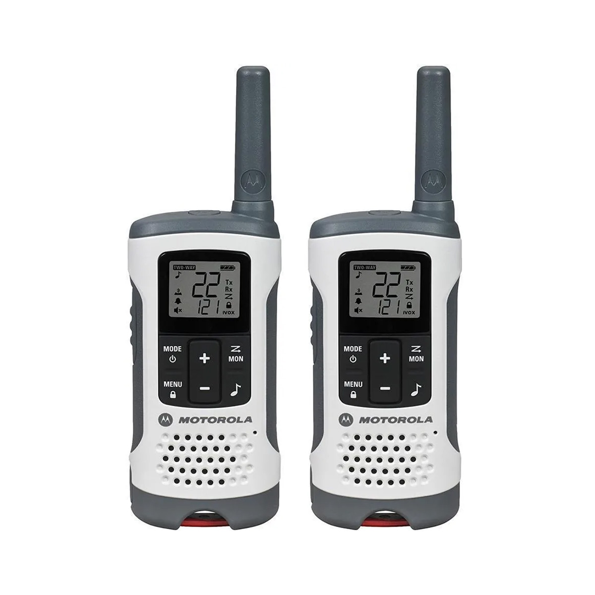 Blister de 2 handies, carga usb y se puede usar con pilas aaa. Alcance 40 km, admite manos libres.