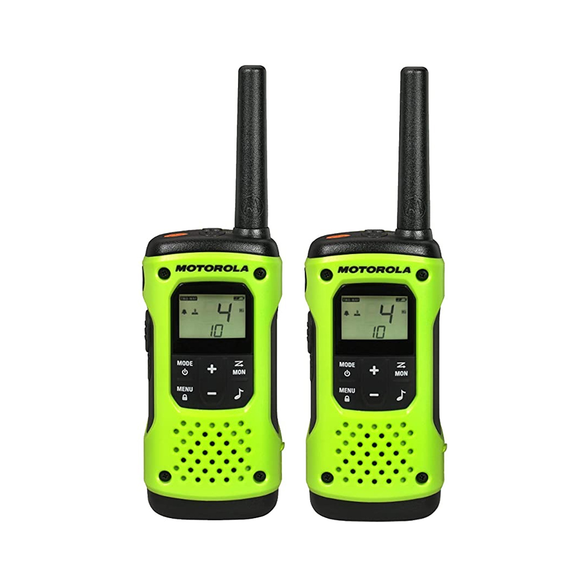 Blister con 2 handies, carga mini usb y pilas recargables. Alcance 56 km, manos libres, linterna y soporta inmersion constante de 1 metro por 30 minutos.
